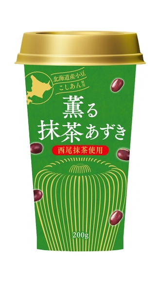 このたび発売する「薫る抹茶あずき」は、「西尾の抹茶」に愛知県に馴染みのある“あんこ”を使ったスイーツ感覚で楽しめるカップ飲料です。あんこには北海道産小豆のこしあんを使用し、抹茶の上品な味わいとあんこの甘さをお楽しみいただけます。