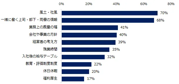 1:転職経験者が感じやすいギャップは、「人間関係」「社風」「仕事内容」。(図1)