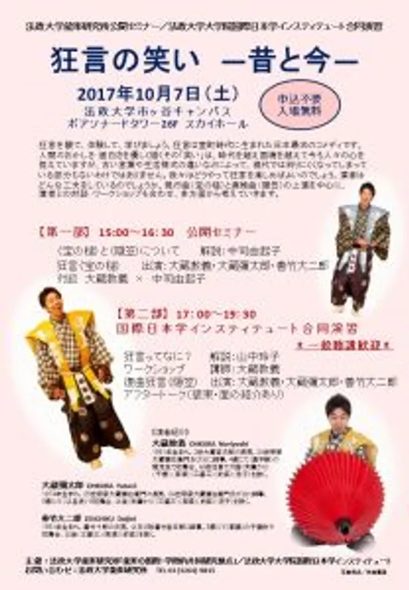 法政大学能楽研究所公開セミナー「狂言の笑い―昔と今―」と 大学院国際日本学インスティテュート合同演習を10月7日に開催