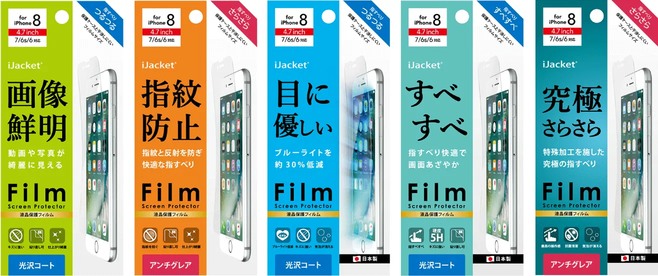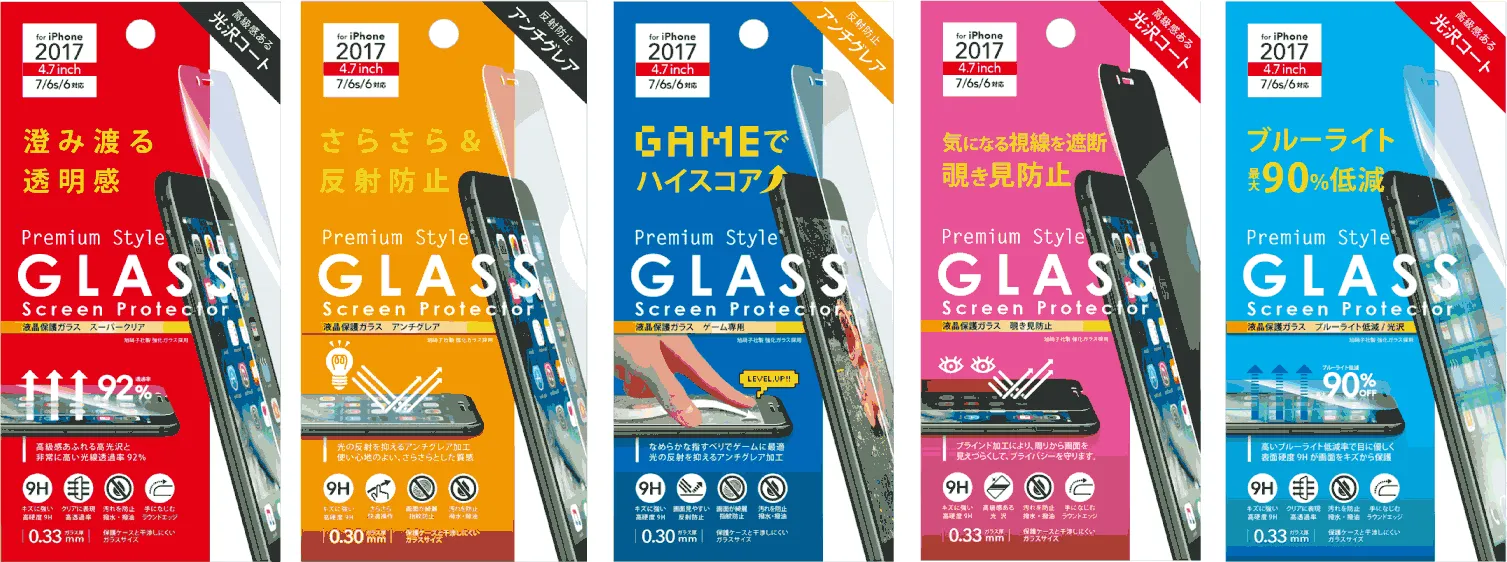 上記以外にも特長のある液晶保護フィルム・ガラスを全20種類ご用意しております。詳細は商品紹介ページをご覧ください。