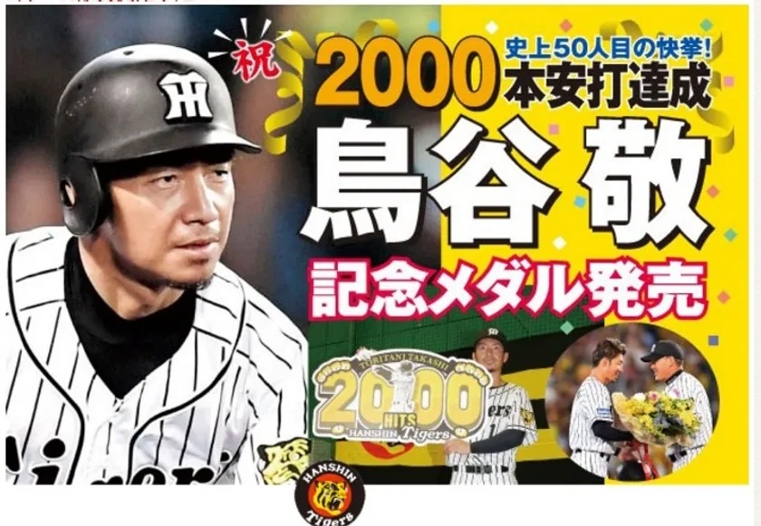 阪神タイガース 鳥谷敬選手2000本安打 達成記念メダル 9月29日(金)全国有名百貨店などで販売