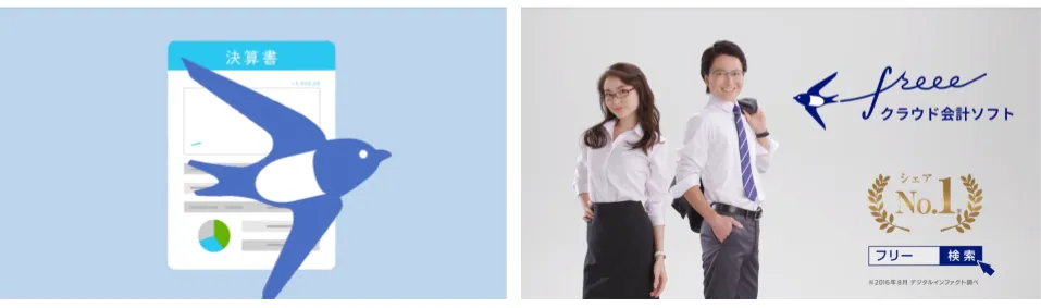 「freeeなら、毎日の経理作業を自動化。」颯爽と登場する freee のツバメ(注。