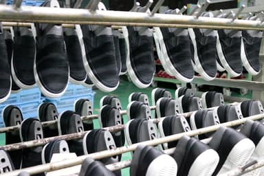 裂き織りの生地をより活かすために、今回はバルカナイズ製法でスニーカーに仕上げました。バルカナイズ製法はゴム底と靴本体を接着し、硫黄を加えた釜で熱と圧力をかける製法で、日本でもその製法ができる工場は3件しかなく今回は広島・府中にあるスピングルカンパニーで1つ1つ職人が仕上げました。
