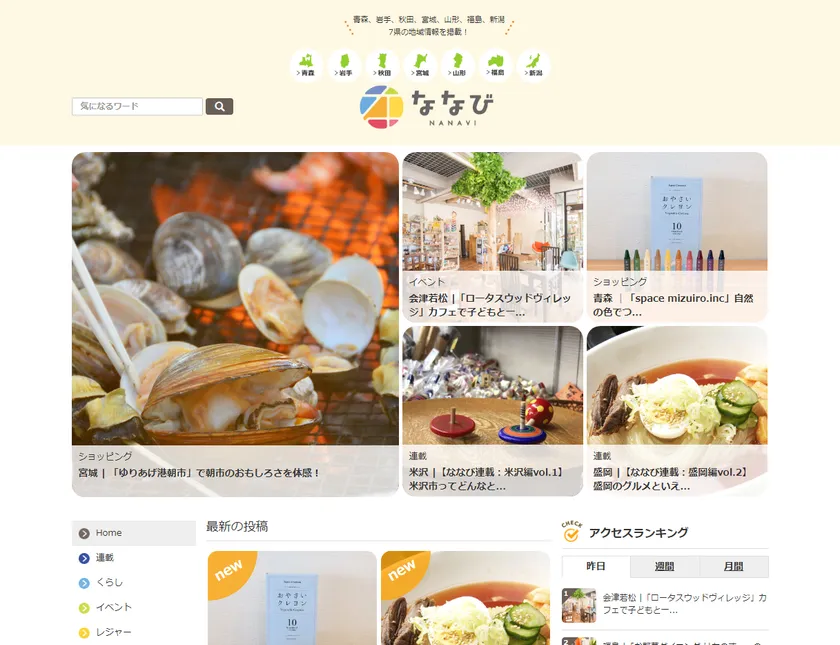 「ななび」は青森県・岩手県・秋田県・宮城県・山形県・福島県の東北6県と新潟県の情報を、現地からお届けする地域密着型情報サイトです。現地で直接取材した情報や、各自治体の発信する情報をもとに、地域住民の目線でその地域に根ざした情報を発信していきます。