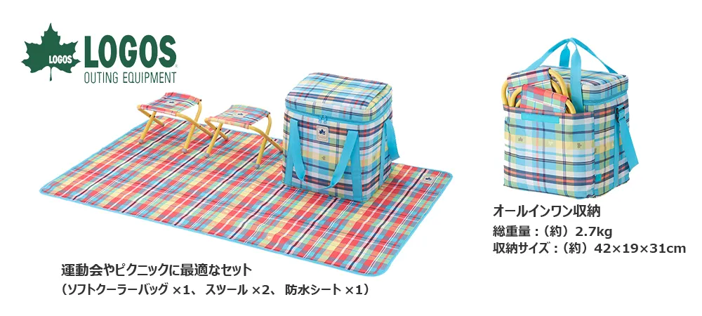 LOGOS ファミリーフェスセット(ソフトクーラーバッグ×1、スツール×2、防水シート×1のセット)