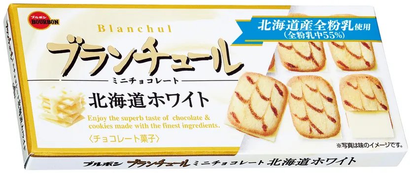 ブルボン、クッキーのバター風味とチョコのミルク感をアップした 「ブランチュールミニチョコレート北海道ホワイト」を 10月10日(火)に新発売!