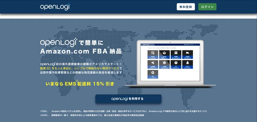 当社は、契約ユーザーから要望の多かった越境EC(*1)への対応を実現することが、国内EC事業者のさらなる市場開拓に必要と考え、米国オレゴン州の物流倉庫と提携し、「米国アマゾンFBA納品サービス」を提供する体制を構築しました。オープンロジの強みである「明瞭な従量課金制」「会員登録後すぐに利用可能」のもと、当社契約ユーザーはAmazon.comを通じて、より簡単に米国向けの販路を広げることが可能になります。