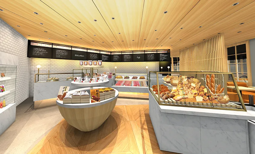 お客様に親しみを感じていただけるよう、店内は温もりを感じられる木目調で統一。毎日通いたくなるような日常使いの商品をご用意し、お買いもの途中のひと時はもちろん、お友達やご家族と気軽に過ごせる新しいスタイルの惣菜店です。