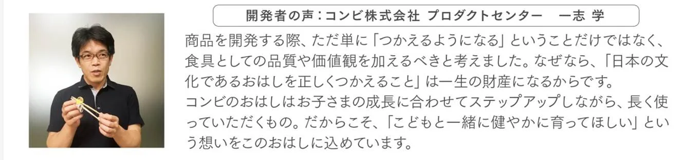 コンビ株式会社は、能登産ヒノキを原材料に使用したお子さま用トレーニング箸「はじめておはし」を2017年10月上旬より、全国のベビー用品専門店、玩具専門店、百貨店などで販売いたします。