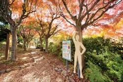 また、効果的に樹木からのフィトンチッドを体内に吸引していただけますよう散策路内で手軽にトライできる秋のおすすめ森林浴ヨーガを紹介しております。健康増進にもお役立ていただけることでしょう。