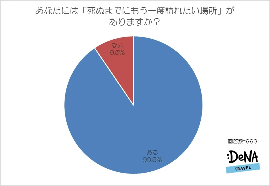 「ある」と答えた人は90.5%、「ない」は9.5%と、実に9割以上の人が死ぬまでにもう一度訪れたい場所があると答えました。