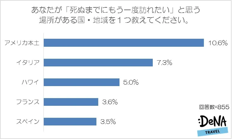 秋は行楽シーズン。旅行先の選び方はそれぞれで、お気に入りの国や場所を何度も訪れる人もいれば、できるだけ違う場所を楽しみたいという方もいるのではないでしょうか。しかし、旅行にはお金と時間がかかります。すごく良い場所でもう一度訪れたいと思ってもなかなかその機会には恵まれないもの。そこで、DeNAトラベルでは「もう一度訪れたい場所」について調査しました。