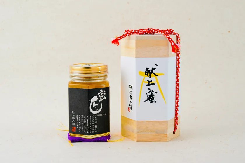 創業大正元年のはちみつ屋「松治郎の舗」では、毎年神嘗祭にて、伊勢神宮にその年に採れた蜂蜜を厳選して奉納させていただいております。伊勢神宮にご奉納することは大変名誉なことであり、毎年、無事に採蜜ができたことへのお礼と、来年も無事に採蜜ができますようにとの願いをこめて行っております。