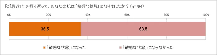 「ここ1年で肌が敏感な状態になった」36.5%、その多くは「季節の変わり目に感じた」65.9%