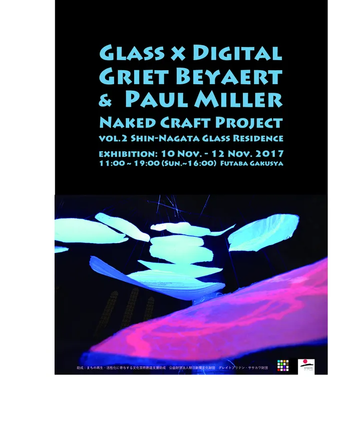 Naked Craft Project(所在地:神戸市長田区、代表:吉田 延泰)は、2017年度の活動として英国現代ガラス協会の協力のもと、ガラスアーティスト:グリエット・ベヤート氏とデジタルアーティスト:ポール・ミラー氏を招致いたしました。