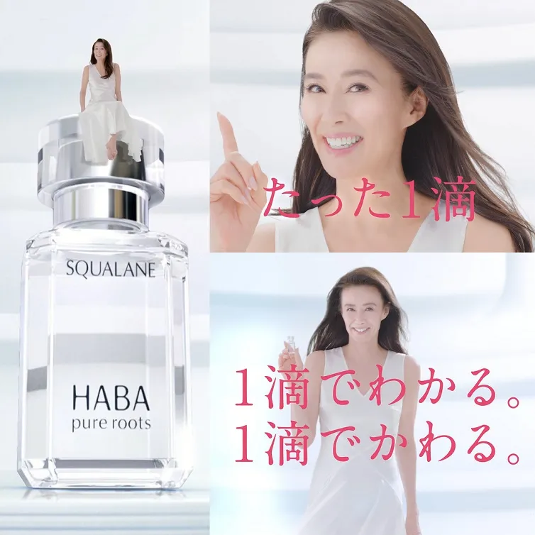今回のCMで一番目をひくのは美容オイル、高品位「スクワラン」のビッグボトルです。萬田さんが座るビッグボトルは、あっという間に縮小し、本来の大きさになって萬田さんの手に収まります。高品位「スクワラン」は、朝・晩たった1滴。そのため一番小さいサイズ(15mL)でも、約3ヶ月も使えます。大きなサイズから実際の小さいサイズへとボトルが変化することで、コストパフォーマンスの高さを表現しました。