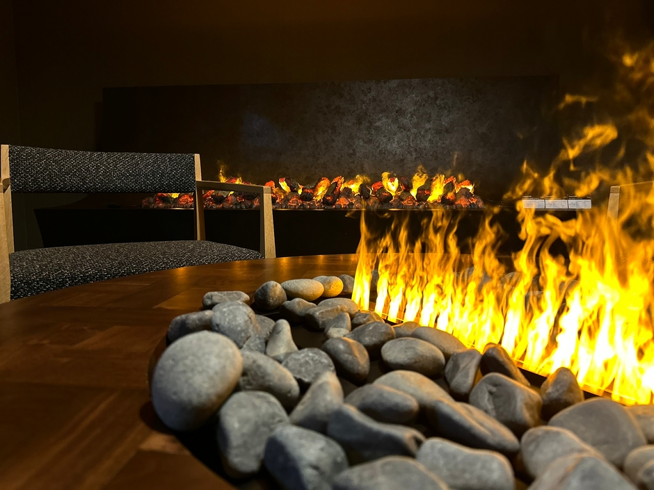 人々を魅了してやまない、炎の美しさ。しかしこれを空間演出に取り入れるためには、消防設備や換気設備、やけど対策など、様々な問題をクリアしなければなりませんでした。さらに、本物の炎には燃料が必要で、導入後にランニングコストの問題が生じることも少なくありません。