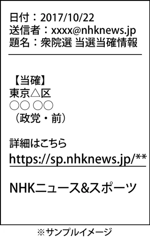 モバイルニュース「NHKニュース&スポーツ」 10月22日衆院選開票速報サービス “当確メール”を速やかにあなたのケータイに!