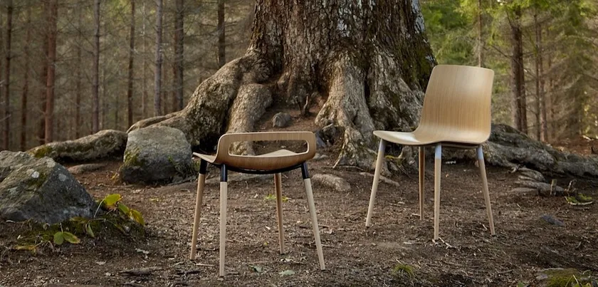 背と座は、弾力性に富んだ三次元成形合板を使用し、立体的に曲げられています。そのことにより背中がゆったりと支えられ、正しい座位姿勢をサポートし、座った瞬間に包み込まれるように感じられます。また、座と脚がシームレスなスチールフレームで接続されてます。この材料の組合わせにより構造が安定し、魅力的な自己連結された外観が造りだされてます。