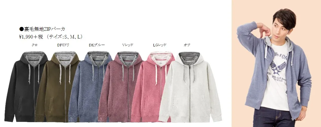 ・価格 :¥1,990+税 ただし、対象商品のパーカ及びカーディガンを2枚同時にご購入いただけると、1枚¥1,490+税になります。