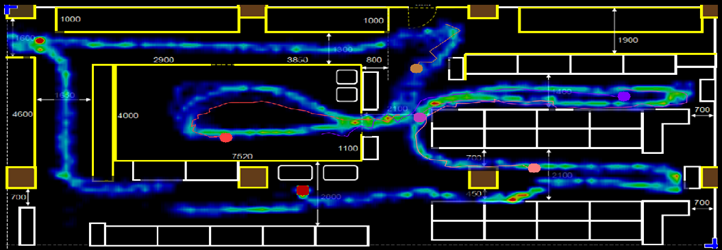 複数センサーをつなぎ合わせた動線追跡の例