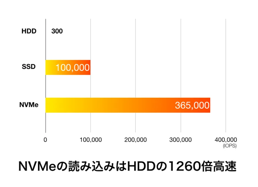 ・HDDの1,000倍以上、SSDの5倍以上高速なNVMeを搭載可能