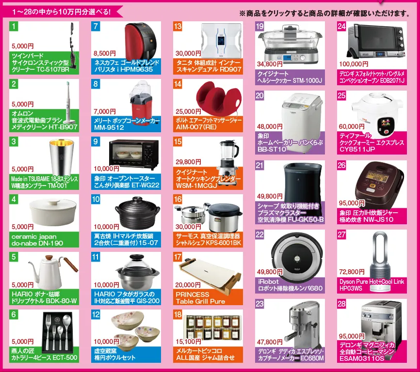 ※賞品仕様(色・型番)は、予告なしに変更の場合があります。