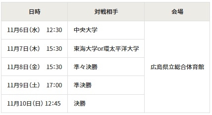 本学は1回戦で昨年優勝した中央大学と対戦。昨年も1回戦で中央大学と戦い、惜敗。リベンジマッチとして臨みます。