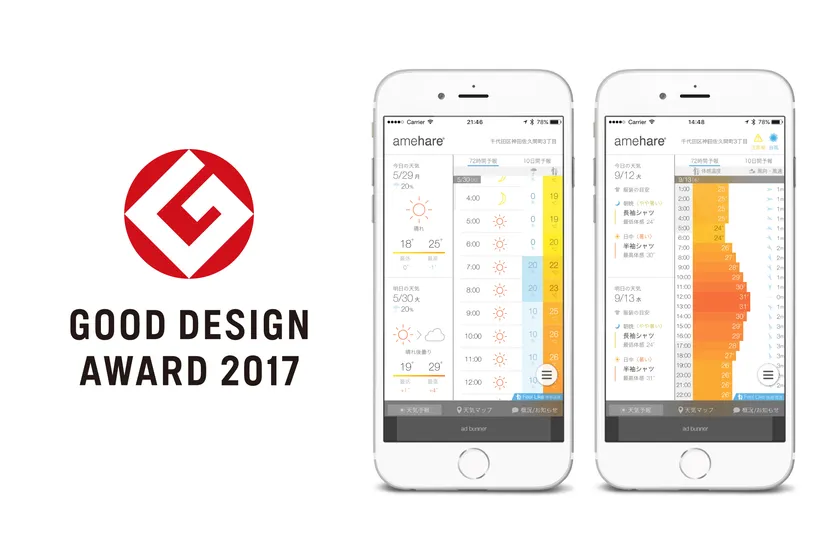 スマートフォン用天気予報アプリ『amehare』が 「2017年度グッドデザイン賞」を受賞