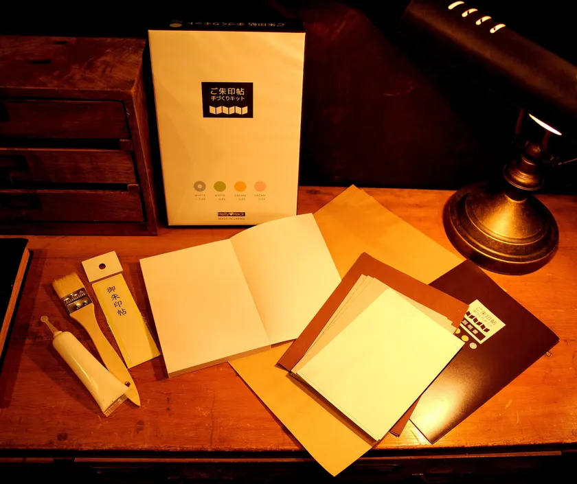 本格的な御朱印帳を求めるユーザー向けに、あらかじめ職人が組みあげた蛇腹奉書紙や、表紙生地をお持ちでない方用に製本用布クロス(生地)、表紙の布貼り作業がラクになるクラフト紙も同梱しているので、失敗も少なく手軽に御朱印帳がつくれます。