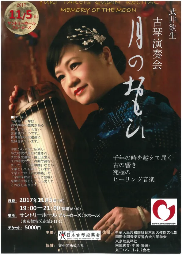 日中国交正常化45周年認定行事 武井欲生 古琴演奏会 11月5日(日) 港区 サントリーホールで開催