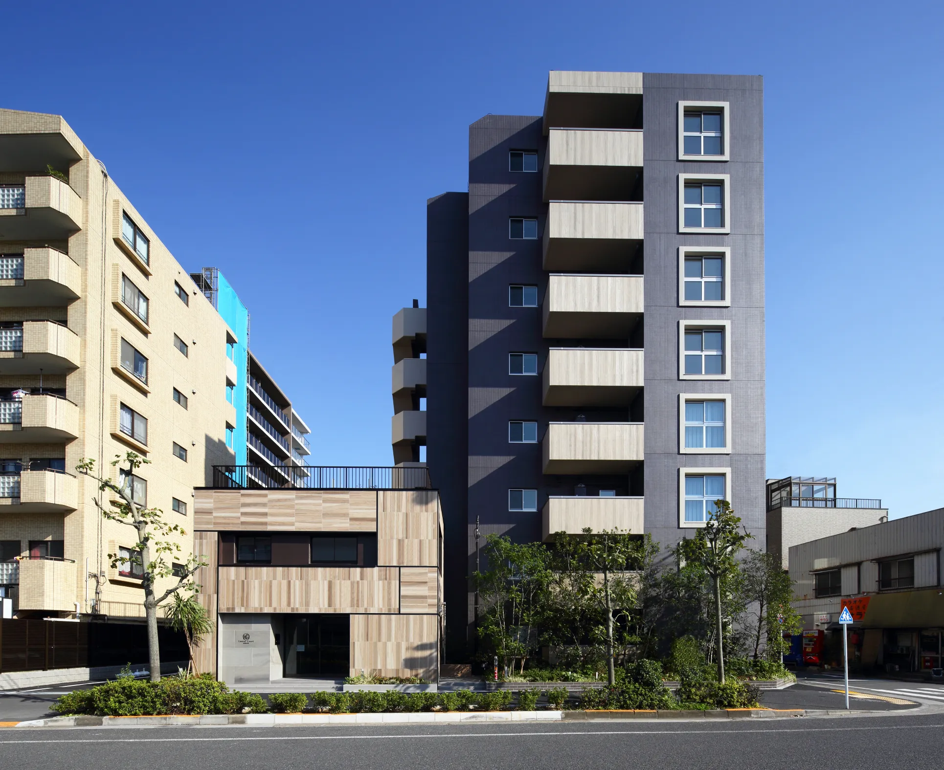 「ローレルコート西葛西」は、都心に近いこのエリアにふさわしい住まいを追求し、我が家に帰り着いた後の寛ぎの時間に徹底的にこだわりプランニングした全30邸のレジデンスです。エントランスを別棟とし、木箱のようにしつらえ、続く共用廊下は同様に木調のマテリアルで仕上げ、我が家の玄関に着く頃には、落ち着きで満たされるよう設計しました。そこに流れる時間の速度を変え、気持ちをゆるめてくれる「スローアーキテクチャー」という考え方を根底にした住まいです。