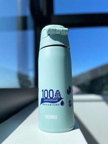 ロアッソ熊本、熊本ヴォルターズ、フォレストリーヴズ熊本、火の国サラマンダーズと限定コラボした、サーモス製の水道100周年記念ボトルです!