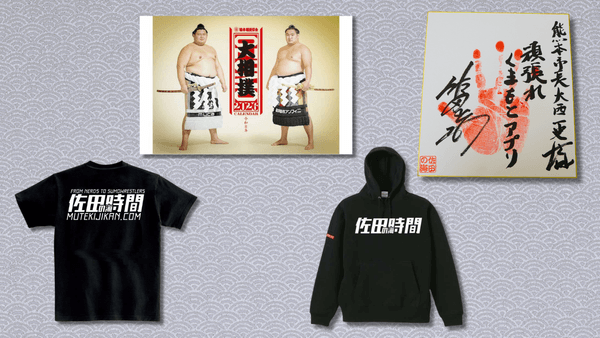 佐田の海関×超人気ゲーマーブランド「無敵時間」の夢のコラボが実現! ゲーム好きな佐田の海関着用モデルのCOOLなパーカー&Tシャツなど、相撲ファンはもちろんゲーマーも必見のセットです。