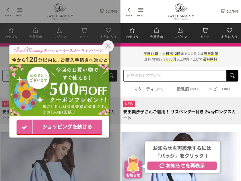 『宝探しキャンペーンパッケージ』とは、サイト上にクーポンなどの「お宝」を埋め込んだことを告知し、ユーザーに「宝探し」をしてもらうことができるパッケージです。ユーザーはサイト上の様々なページを回遊することで、「お宝」を見つけだすことができます。従来の「ZenClerk」のパッケージとは異なり、賑やかしを演出することができるため、ユーザーの「サイト来訪意欲」を喚起し、さらに来訪後の「サイト内回遊と注文率アップ」を短期集中的に促進することができます。