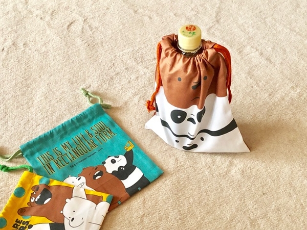 小さいペットボトルのときは、小さい巾着が使えますよ。