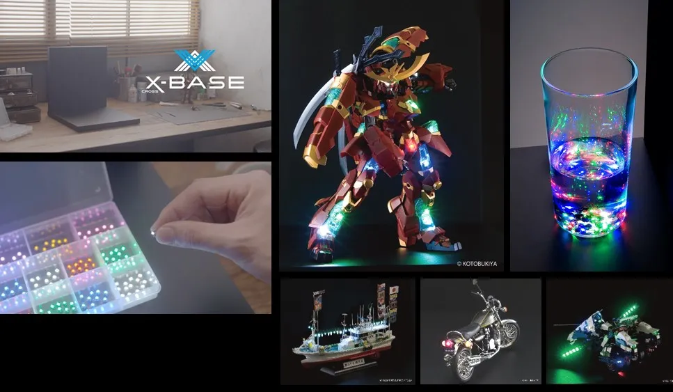 例えば、これまでのプラモデルなどの模型工作では乾電池(電池ボックス)とLED電球をつなぐ細かい配線や、電力抵抗値の計算による複雑な基板設計など、ある程度の専門知識がないと非常に困難でたいへん面倒なものでした。しかし、本製品を用いることで模型上級者のみならず、初心者の方々にも「光るプラモデル作品」を楽しんでいただくことができます。