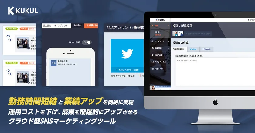 『KUKUL』は、「高度なSNSマーケティングをお手軽に」をコンセプトに開発した、クラウド型SNSマーケティングツールです。Twitter・Facebookの運用(管理・投稿・分析)を効率的・効果的に行うためのさまざまな機能が実装されています。