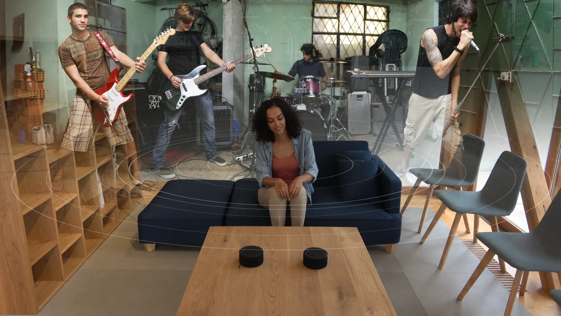 従来のステレオスピーカーでは、一定の方向のみ音を出すので視聴する範囲に制限があります。本製品は、コンパクトながら4つの高性能Hi-Fiスピーカーを4方向に配置し、360°に広がるサウンドを楽しめます。2つの完全ワイヤレススピーカーを使用する事で更に音の届く範囲が広がりどこでも視聴できる環境を作り出す事が可能です。
