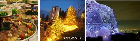 また、12月23日(土・祝)~25日(月)には、クリスマスディナーを実施します。本格的なフレンチコース、六甲山名物ジンギスカン料理、約30種類の洋食料理が並ぶビュッフェ料理の3つのスタイルをご用意します。すべてのレストランから望む1000万ドルに輝く夜景を眺めながら、お食事をお楽しみいただけます。