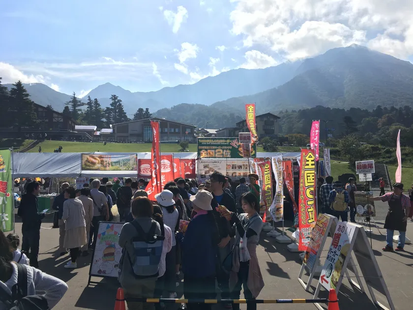 参加スタッフはそれぞれ、レジにて商品のこだわりの説明、調理は必ず出来立て熱々をお召し上がりいただくために、列を見ながらスピードの調整をすることで最高の状態でバーガーを提供。またPRの声掛けも事前に練習し、全員で声を合わせてしいたけの合言葉を発声するなど、テント内ら会場全体に盛り上がりの中心地となっていました。店舗の外ではこの日のために作成したTHIS 伊豆 SHIITAKE バーガーキッチンの今までの活動やこだわりをまとめたチラシの配布と、一人でも多くの多くの方に伊豆に足を運んでいただくために、伊豆市の観光情報マップを地域おこし協力隊とともに配布し地元のPR活動を行うなど、まさにスタッフ全員が一丸となって「伊豆のしいたけ」のPR活動を行い、地元愛を鳥取の大山に轟かせました。