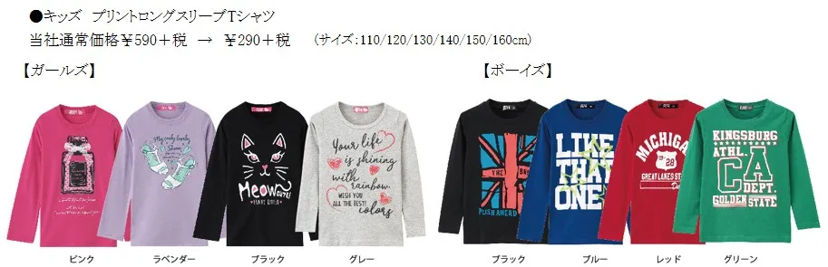 キッズは、おしゃれでかわいいプリントのロングスリーブTシャツや、ふんわりやわらかな着心地のミニ裏毛ZIPパーカなど、多数ご用意しております。