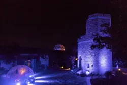 異国情緒漂う西側エリア内のシンボル「見晴らしの塔」を照明アーティスト・伏見雅之氏の演出で、お客様の奏でるテルミンの音色に合わせて、ライティングします。