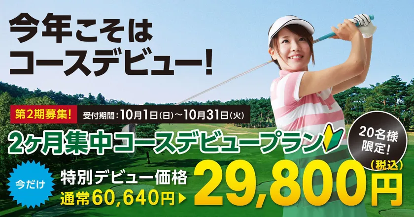 ゴルフコースデビューを限定20名・約50%オフの料金でサポート! 大阪・小阪、南千里の2店舗で2ヶ月集中プランの受付開始