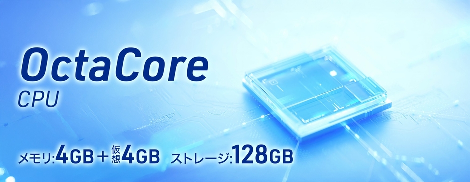 オクタコアCPUと4GBメモリ(仮想+4GB)、128GBストレージを搭載。複数アプリの切り替えや動画視聴もスムーズにこなし、日常の使用シーンで安定した動作を発揮します。