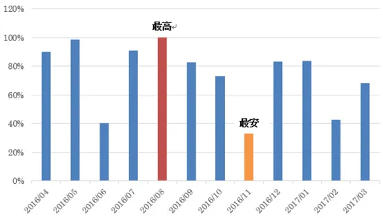 阪急交通社は、2016年4月~2017年3月の1年間におけるツアー(フリープラン※)の旅行代金推移を、月別、発着地別に調査。その結果をご報告します。