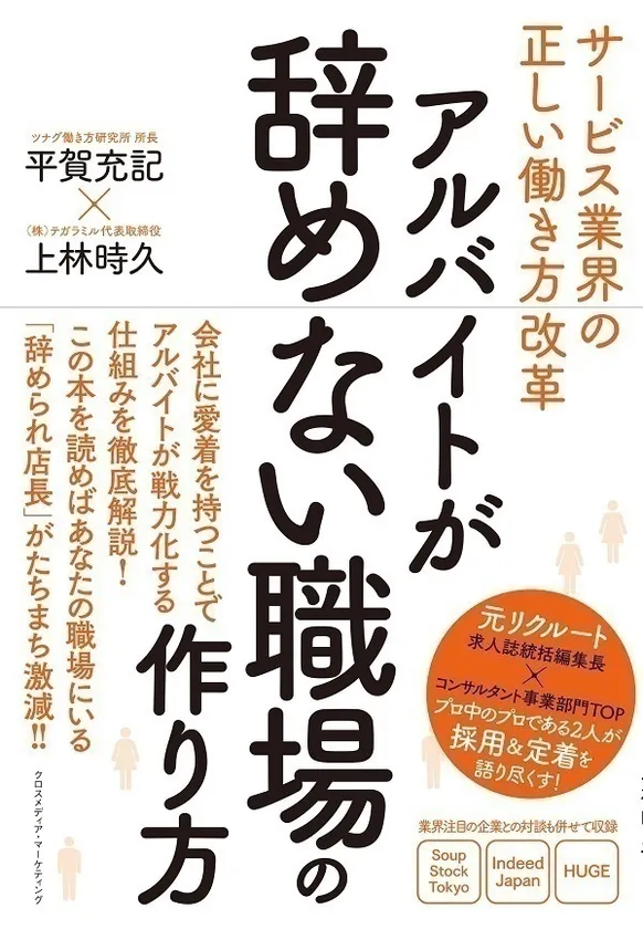 『アルバイトが辞めない職場の作り方』と題した本書籍は、モチベーションに特化した人事コンサル事業を営む株式会社テガラミル代表取締役:上林時久氏と共著。サービス業界における最重要経営課題である『アルバイトの離職防止』をメインテーマとし、「職場・お店に愛着を持ってもらうこと」をKFS※にしたアルバイト戦力化のメソッドについて解説しています。
