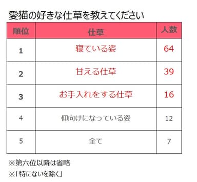 調査結果2:愛猫の好きな仕草、「寝ている姿」が第一位