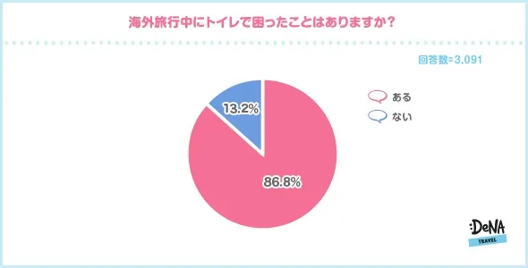 オンライン総合旅行サービス「DeNAトラベル」(http://www.skygate.co.jp)を運営する株式会社DeNAトラベル(本社:東京都新宿区、代表取締役社長:大見 周平)は、10代~60代の男女3091名を対象に「海外旅行中のトイレ事情」に関する調査を実施しました。