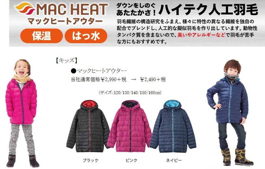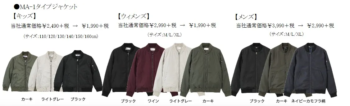 3大アウターとして、ダウンをしのぐハイテク人工羽毛の「マックヒートアウター」や、カジュアルの定番のMA-1タイプジャケット、部屋着にも最適なフリースジャケットを特別価格にてご用意いたしました。